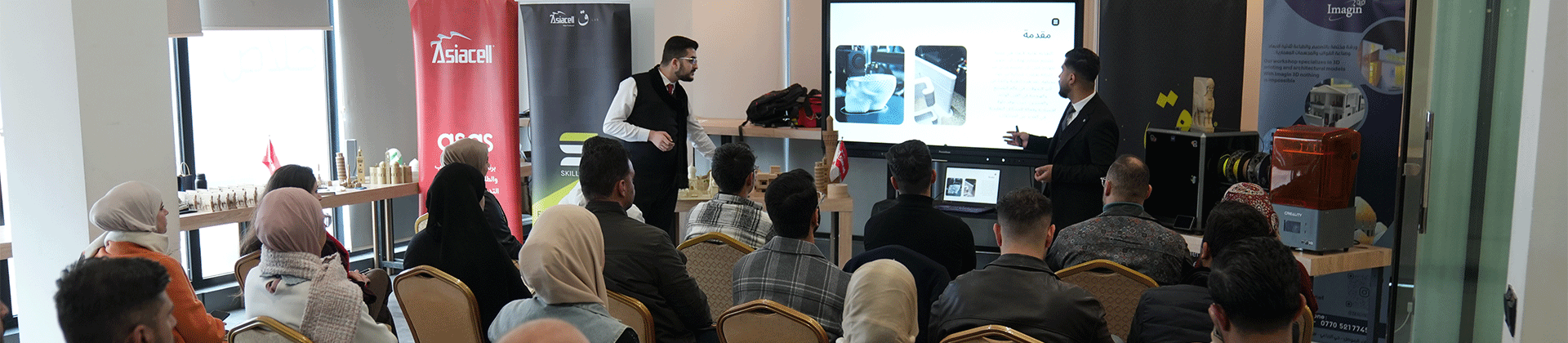 برعاية آسياسيل ومن خلال منصتها الريادية "أساس"، أُقيمت ورشة تخصصية بالشراكة مع "ق لاب" في مدينة الموصل، لتسليط الضوء على أحدث الابتكارات والتطبيقات الحديثة للطباعة ثلاثية الأبعاد في مجالات التصميم المختلفة. هدفت الورشة إلی دعم الإبداع والتكنولوجيا وتمكين الشباب.