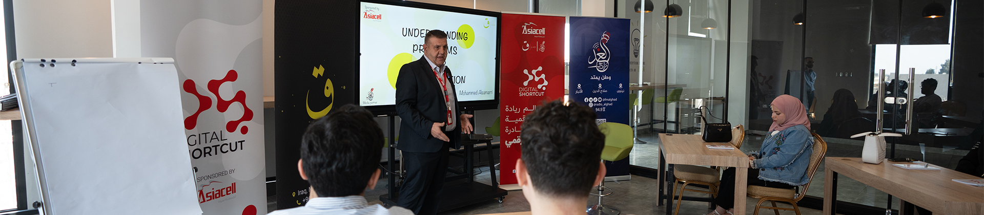 في إطار رؤيتها الإستراتيجية للتحول الرقمي، تواصل آسياسيل التزامها بتمكين جيل المستقبل من خلال رعايتها لمبادرة "الإختصار الرقمي"، والتي تهدف إلى تطوير المهارات الرقمية وتعزيز الثقافة التقنية لدى الشباب العراقي. تأتي هذه المبادرة بالشراكة مع (Qaf Media Lab) في مدينة الموصل، ضمن الرؤية المشتركة لخلق بيئة تعليمية وتدريبية حديثة تُلهم الإبداع وتُعزز من قدرات الشباب في مجالات التكنولوجيا والتحول الرقمي.