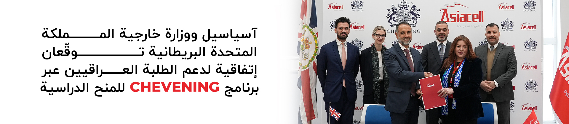 شركة آسياسيل ووزارة خارجية المملكة المتحدة البريطانية توقعان اتفاقية لدعم الطلبة العراقيين ضمن برنامج تشيفنينغ "Chevening" للمنح الدراسية