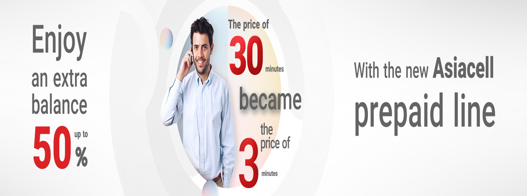 All Asiacell’s subscribers of new Prepaid Line in Baghdad, Basra, Amara, Dyala, Suly and Tikrit can enjoy a discounted flat calling rate of (2.8 IQD / Second) to all local networks. Besides, they can also enjoy Free credit up to 50% with every recharge; starting from 5,000 IQD or more without any subscription fees.