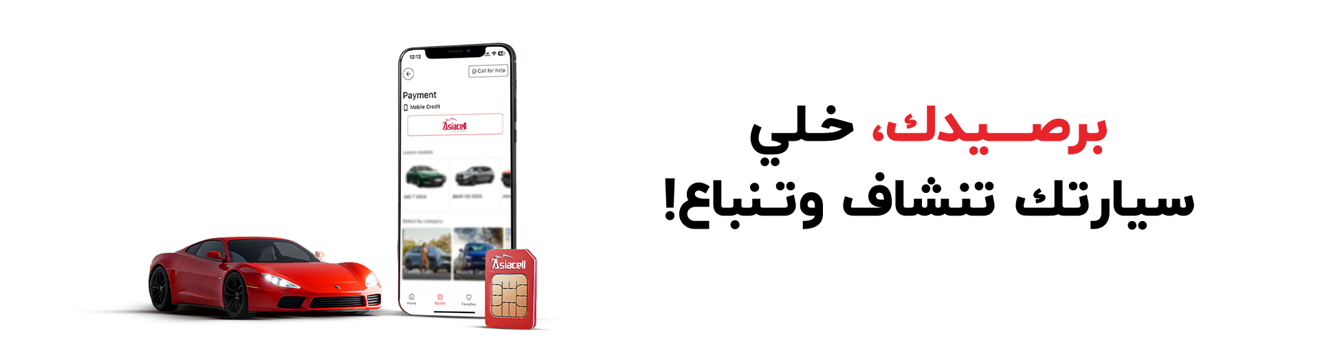 يمكنك الآن وبكل سهولة الدفع برصيد خطك من آسياسيل لتحميل صورة سيارتك للإعلان عنها وبيعها على تطبيق iQ Cars.