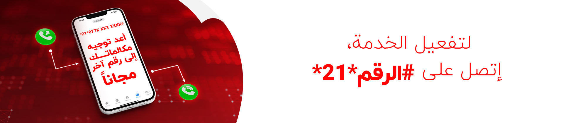 من خلال خدمة تحويل المكالمات يمكنك تحويل مكالماتك الواردة إلى رقم عادي آخر دون التأثير على ميزة خطك أو مكالمتك في إجراء المكالمات.